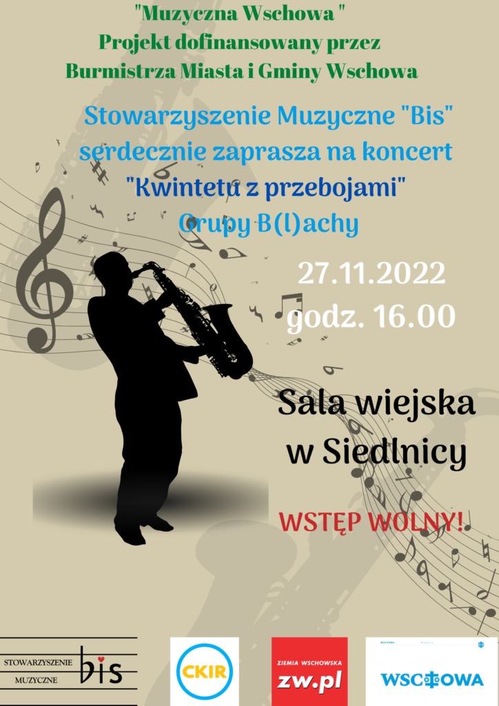 Koncert „Kwintetu z przebojami” Grupy B(l)achy 27.11.202221 listopada 2022 To już ostatni koncert realizowany przez Stowarzyszenie Muzyczne „Bis”, w ramach projektu „Muzyczna Wschowa , dofinansowanego przez Burmistrza Miasta i Gminy Wschowa. Tagi:Gmina Wschowakoncertmłodzieżmuzyka Dodaj komentarz Anuluj pisanie odpowiedziTwój adres e-mail nie zostanie opublikowany. Wymagane pola są oznaczone *Nazwa * Adres e-mail * Witryna internetowa Komentarz * Zapamiętaj moje dane w tej przeglądarce podczas pisania kolejnych komentarzy.
